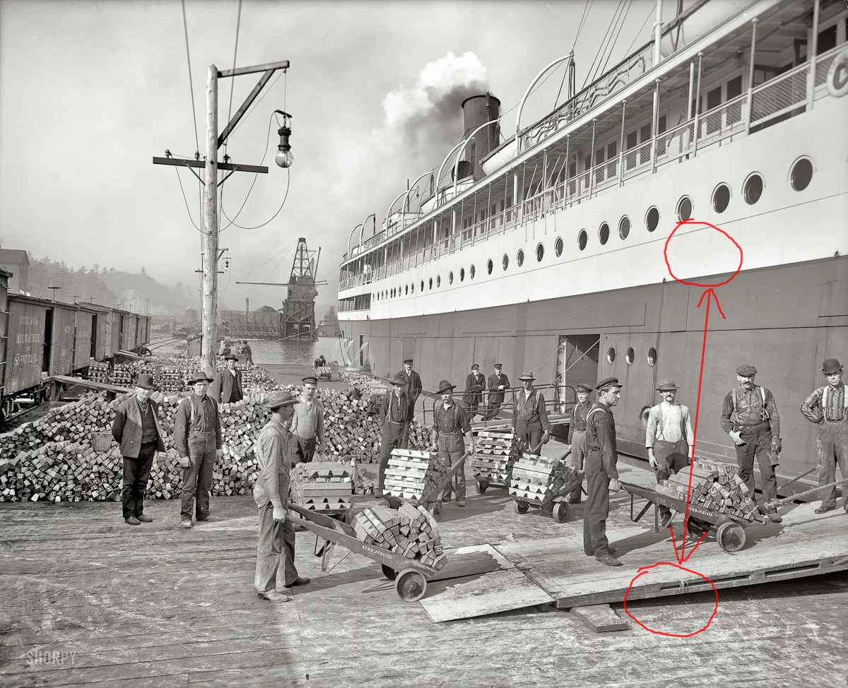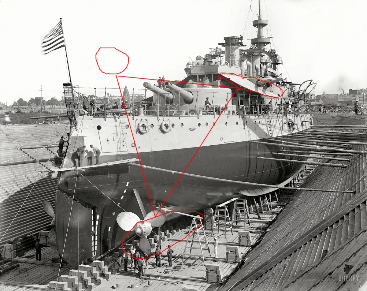 Чтобы такие тени имели детали, и даже яркое летнее небо, как оно бывает просто яркое без цвета, не выбило в просто белое, съев при этом все контуры корабля.