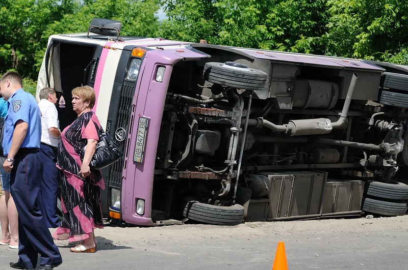 Как там можно завалиться набок на тротуар непонятно. Для этого надо ехать поперек дороги и резко взять вправо. Или чтобы злые пассажиры подтолкнули сбоку :D.