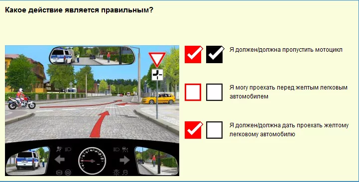 В условии задачи не указано, есть ли знак "уступи дорогу" у желтого. В принципе, вопрос теста сформулирован коряво (чтобы усложнить жизнь сдающему), ибо знака