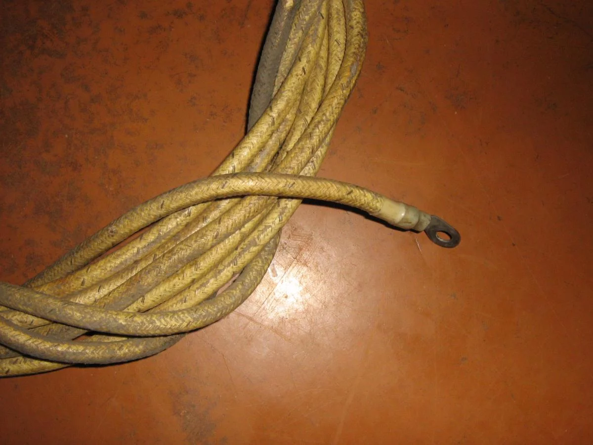 Вообщем: многожильный, медный в нитевидной изляции белого цвет с промежуточной черной нитью, вроде как сверху покрыт лаком, толщиной примерно 8-10мм. Походу еще времен СССР. Если нужно могу выложить фотки.