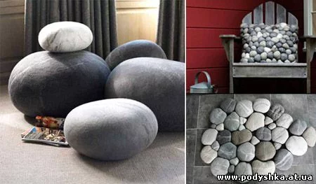 . Это верхний чехол без единого шва, так как валяется на форме. А эта форма и есть наполнитель. То есть этот валун сделан из какого-то упругого материала, а потом завалян шерстью. Это не относится к маленьким камням (до 10 см), они как раз делаются полностью из шерсти, но получатся они твёрдые. Я делаю по такой технологии бусы из шерсти. А я спрашиваю о больших подушках. Хотя идея у меня уже есть - вспенённый полиуритан - буду прорабатывать.