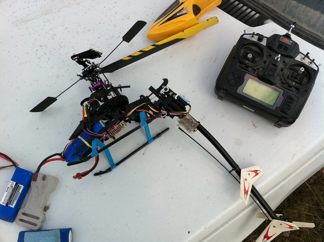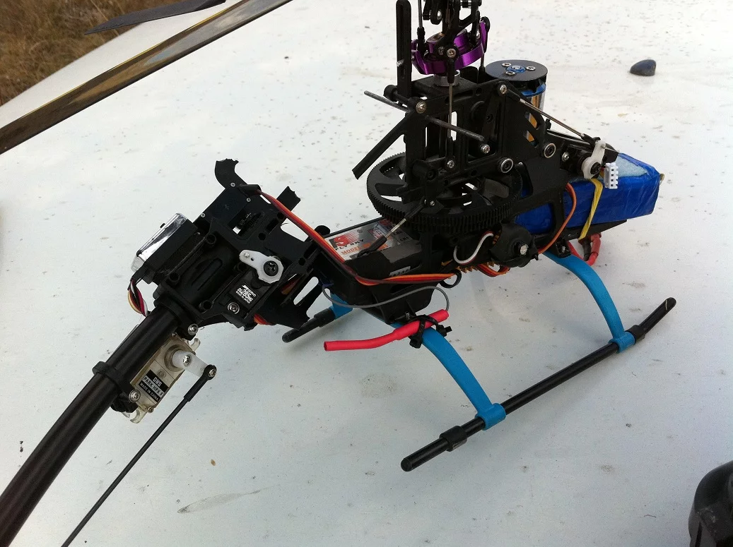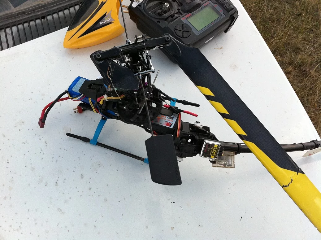Ну хвост и отказал... Хз, почему, но тяга на месте была после краша... И шестеренок тут нет, которые слизываются...Да, собственно, абсолютно неважно в какую сторону повернута качалка на серве. А вот тяга должна проходить прямо. Добивается это поворотом крепления хвостовой сервы вокруг хвостовой балки.