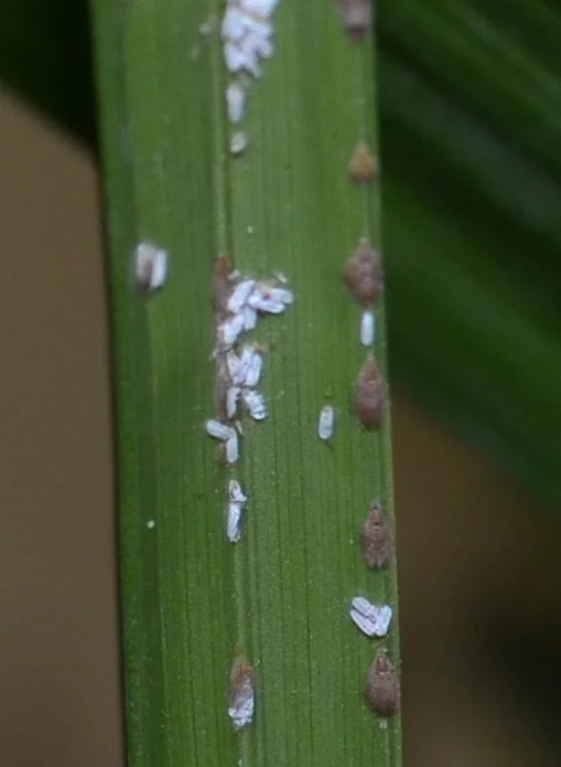На пальме вышесфотографированная неведомая фигня((( Два вида: белые вроде палочек и серенькие. Живут на стволах, в основаниях листьев, на листьях..т.е. повсеместно. В магазине посоветовали полить Зеленым щитом, белые палочки в грунт(не помню название). Прошел месяц: дряни еще больше стало(( Теперь сказали полить фундазолом...