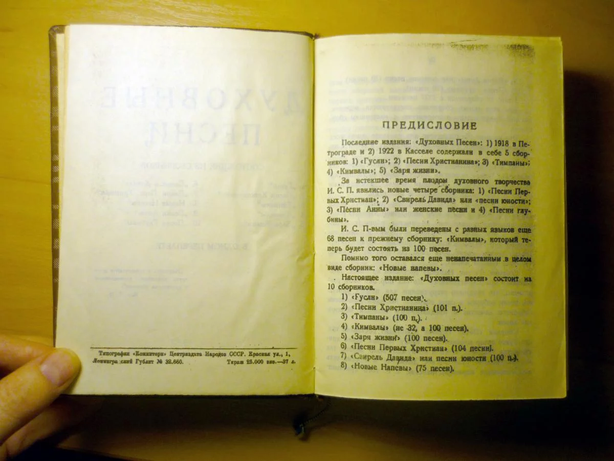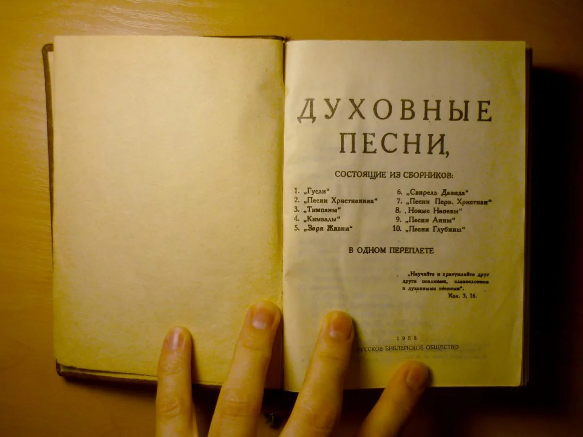 Духовые песни, 1958 г., отпечатана Русским библейским обществом в типографии «Коминтерн», состояние хорошее.