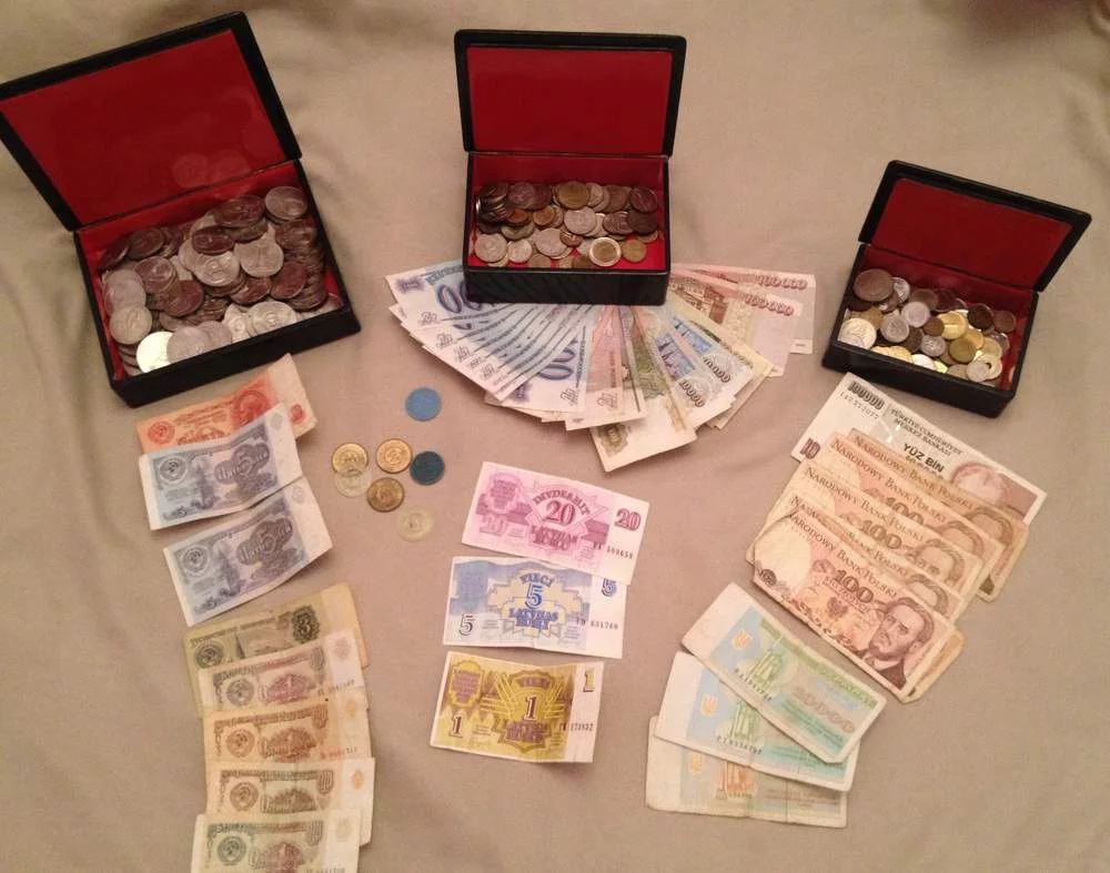 купюры Турции, Польши, Латвии, карбованцы Украины и рубли СССР