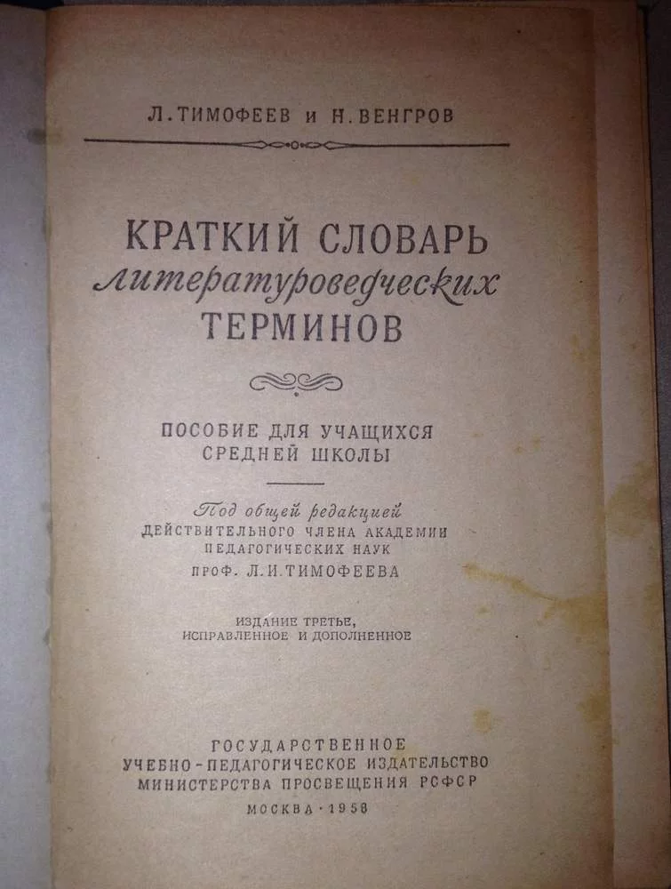 - Краткий словарь литературных терминов 1958 г