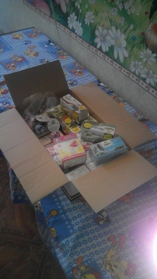 В посылке были еще памперсы для самого младшего, игрушки, вещи на детвору - 4 детей от 16 лет до чуть старше года.