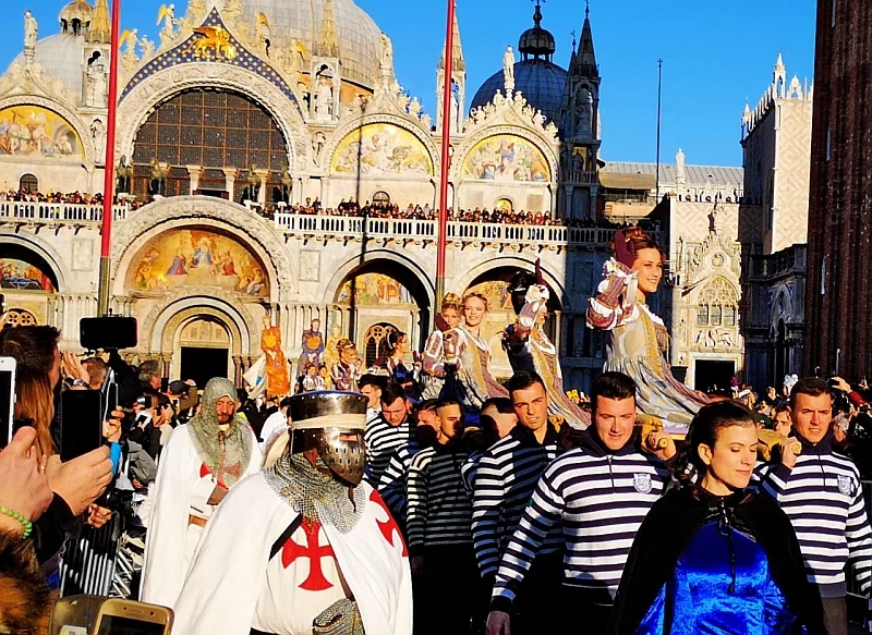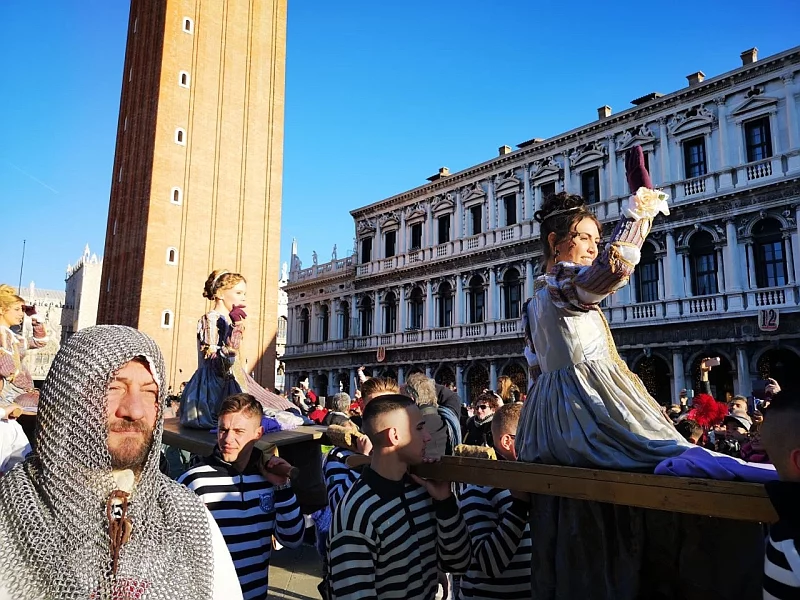 Площа Святого Марка. Витоки церемонії ведуть до середини IХ століття. Традиційно в лютому в свято Purificazione di Maria венеціанці вибирали 12 найкрасивіших дівчат з бідних сімей, які брали участь в спеціальному благословення, що проходить в базиліці Сан П'єтро ді Кастелло. Передбачалося, що протягом року вони повинні вийти заміж, тому заможні громадяни в якості приданого жертвували майбутнім нареченим золото і дорогоцінні прикраси з власних коштів.