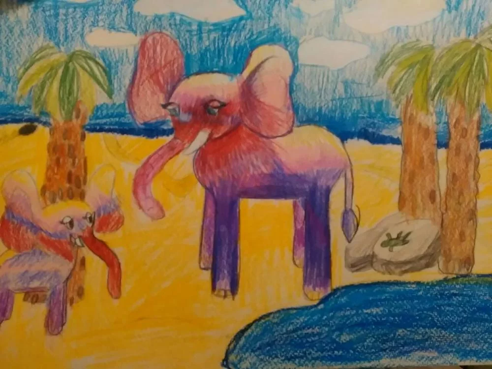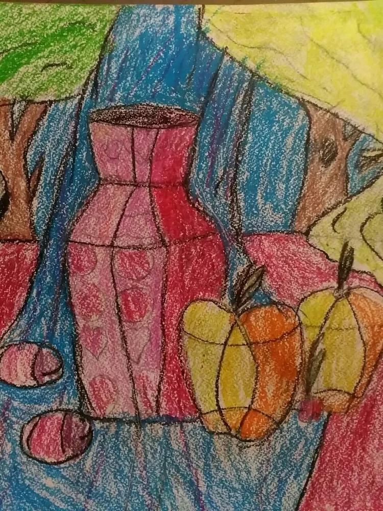 У ней интересный стиль. Пусть попробует не фломастерами, а более серьезными красками. Развивай! Не давай ей угаснуть!