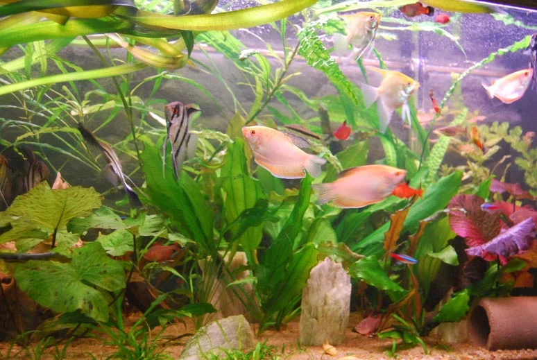 в том аквариуме \маленьком\растений нет вообщем.
