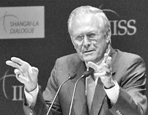 «Министр обороны США Дональд Рамсфелд утверждает, что Китай и россия,также как Северная Корея, входящая в американскую «ось зла», мешают сотрудничеству стран Юго-Восточной Азии».