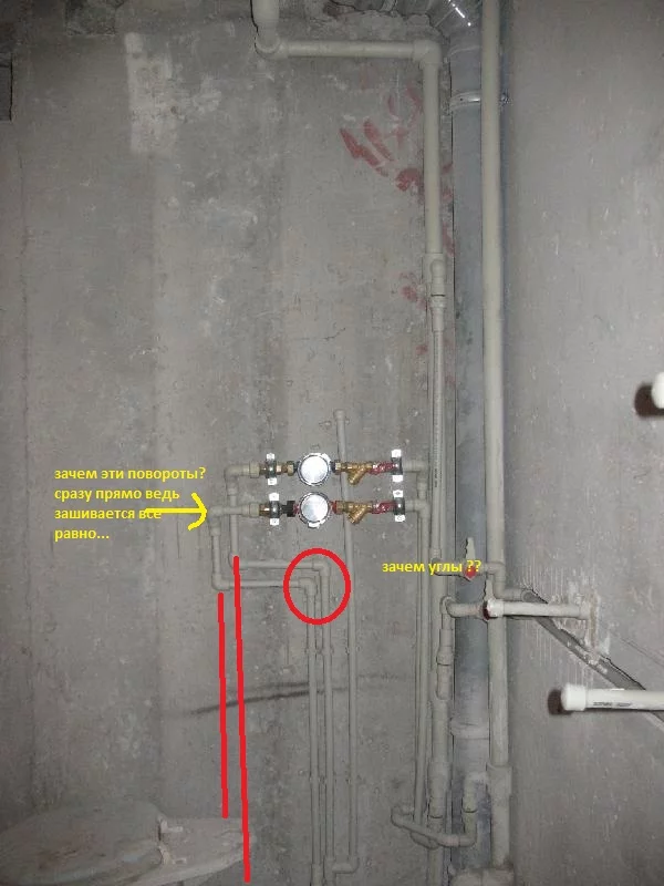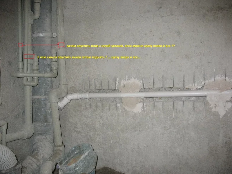 но все же, имхо, в стояки нужно было выше врезаться, или ревизионный люк внизу делать, чтоб меньше изгибов было до первых кранов, или хотя бы в точке врезки поставить фильтр грубой очистки (хотя он забивается очень быстро). А так - каждый изгиб - это мусоросборник.
