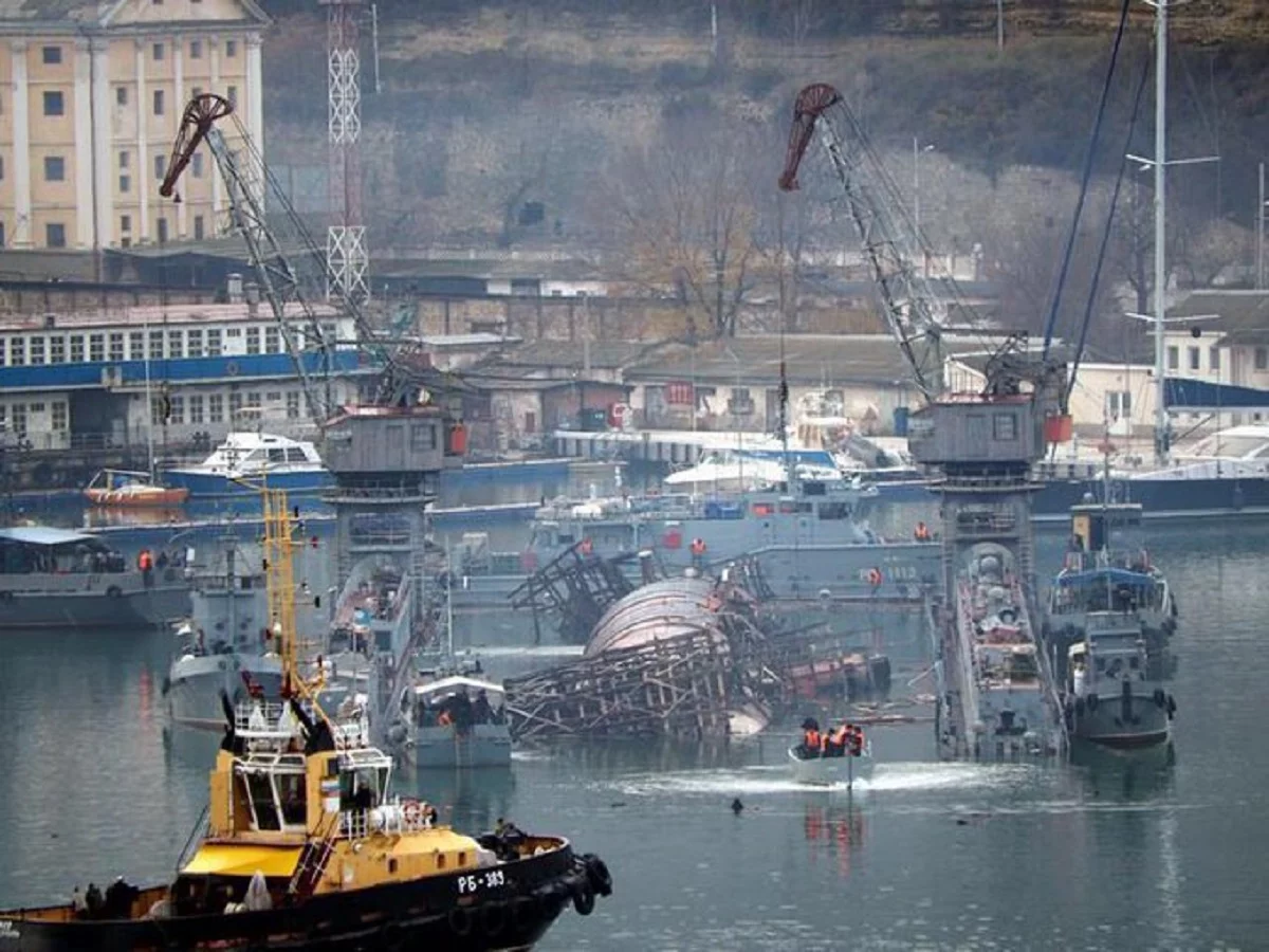 Когда-то принадлежащая Черноморскому флоту подлодка Б-380 затонула вместе с плавдоком у берегов Севастополя. Бесхозный «Горьковский комсомолец» плавает сам по себе.