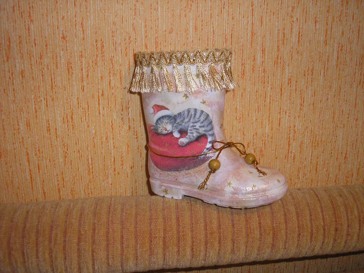Вот такие у меня декупажные сапожки получились..подставочки для веточек