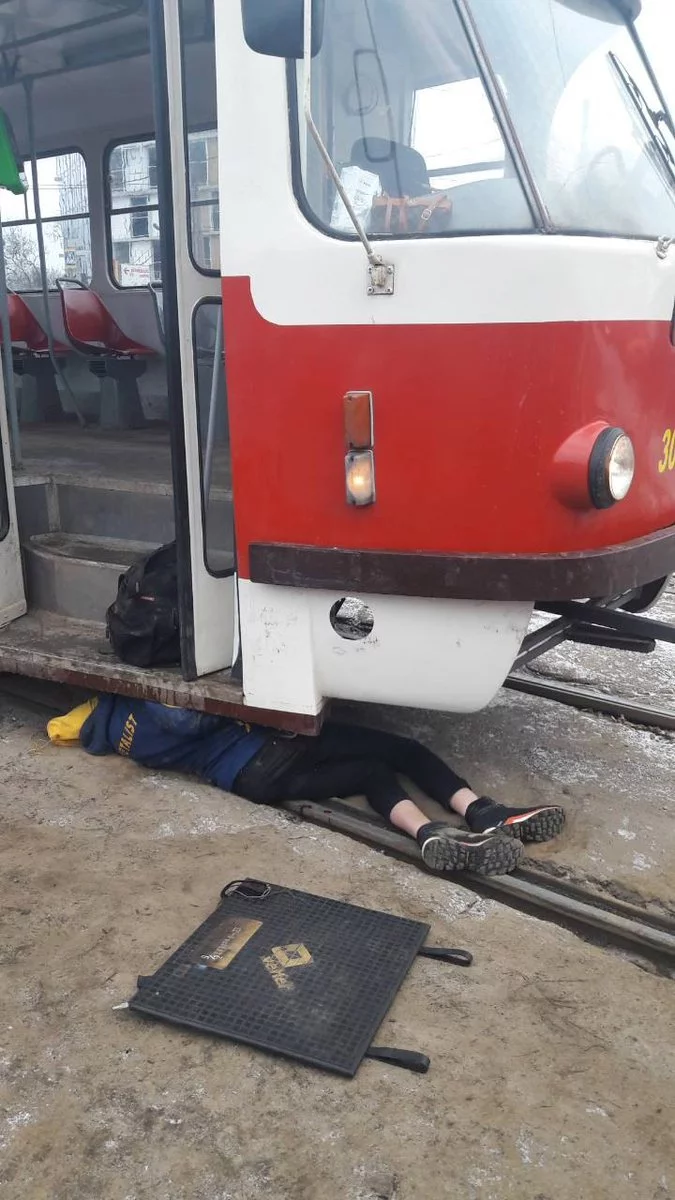 Вот в школе правИла училки вбивают, не объясняя смысла. А надо просто объяснить - ну не видит тебя водила встречного трамвая!Вообще-то этот молодой человек обходил трамвай сзади