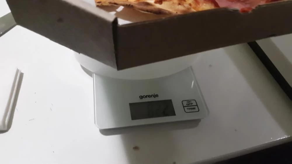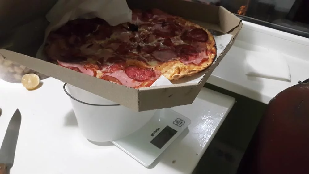 Взвесил пиццу после доставки в коробке - 822гр.