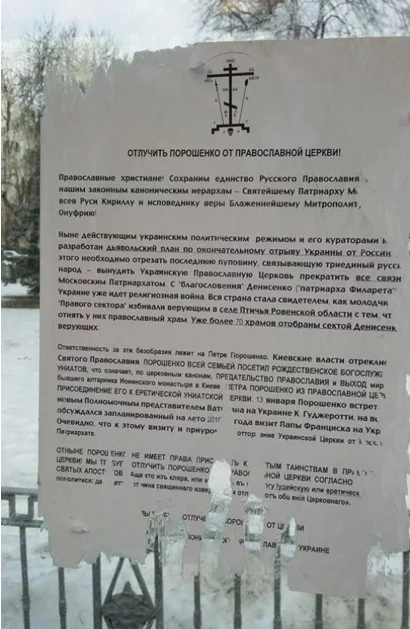 Так, например, возле станции метро Университет были распространены и расклеены листовки с призывом отлучить П. Порошенко от церкви: