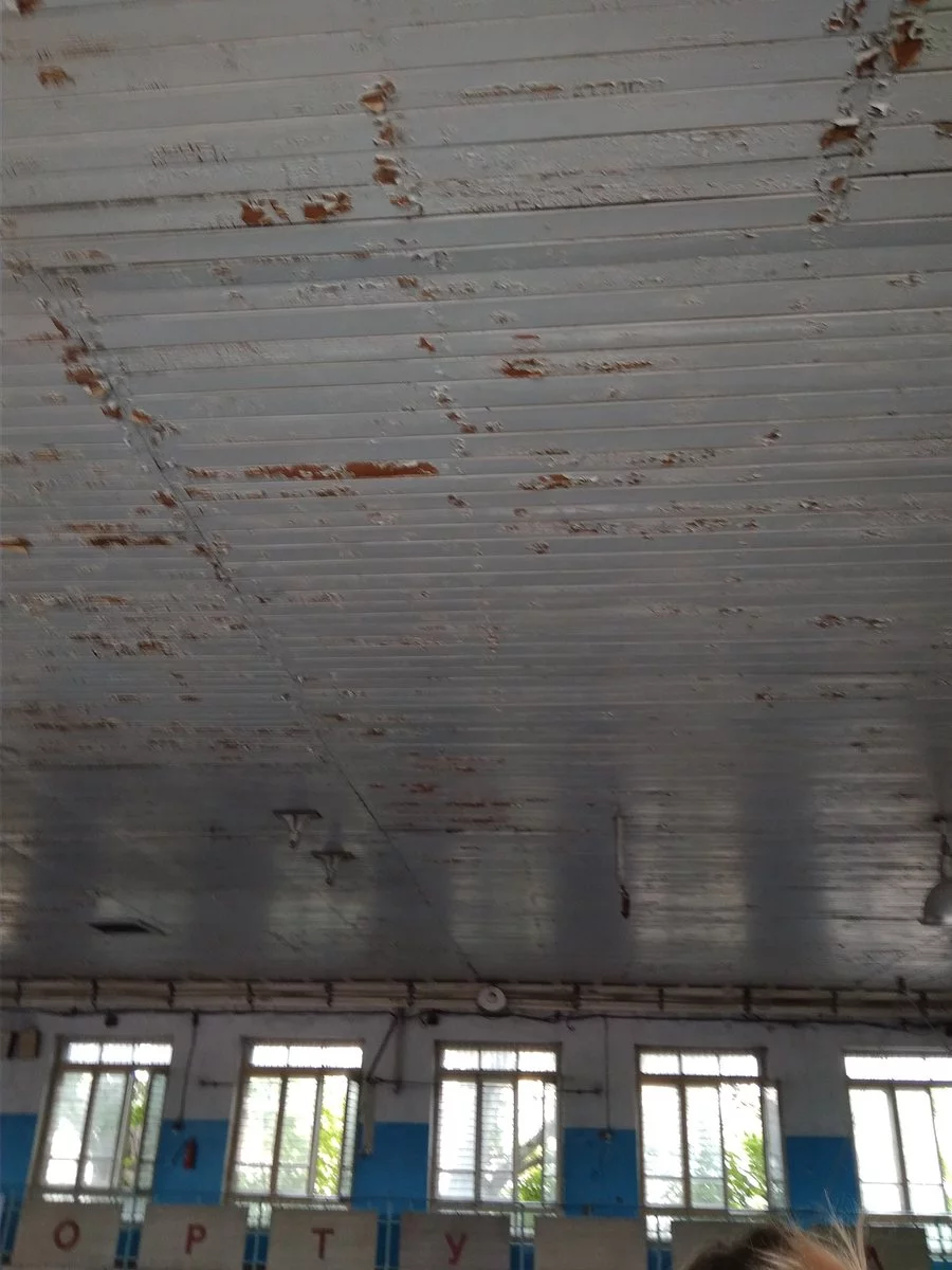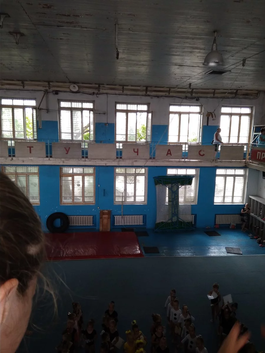 обычный спортзал, какой был при СССР, такой остался и при Украине, такой и сейчас, *** его ремонтировать, дети побыли два часа и съебнули, такие спортзалы в 90% школ, в Украине таких тоже полно