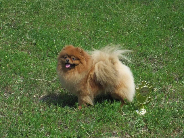 В юниорах изобрела свою собственную выставочную стойку- ушки плотно к голове, хвост по земле, спинка горбиком
