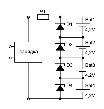 Вот сильно упрощенная схема зарядки с балансиром: