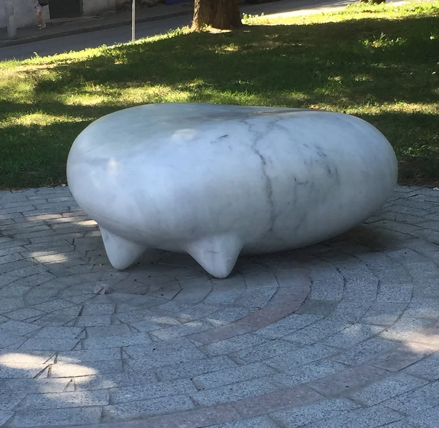 Лавочки из итальянского белого мрамора изготовлены в модном скульптурном бюро где-то на севере Италии.
