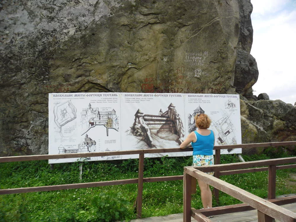 День похода на Тустань. Крепость 12 века. Расстояние 7 км до нее и 7 км назад, осмотр- 3 км. Итого 17 км пешей прогулки. В 9-00 ушли, в 17-00 вернулись.