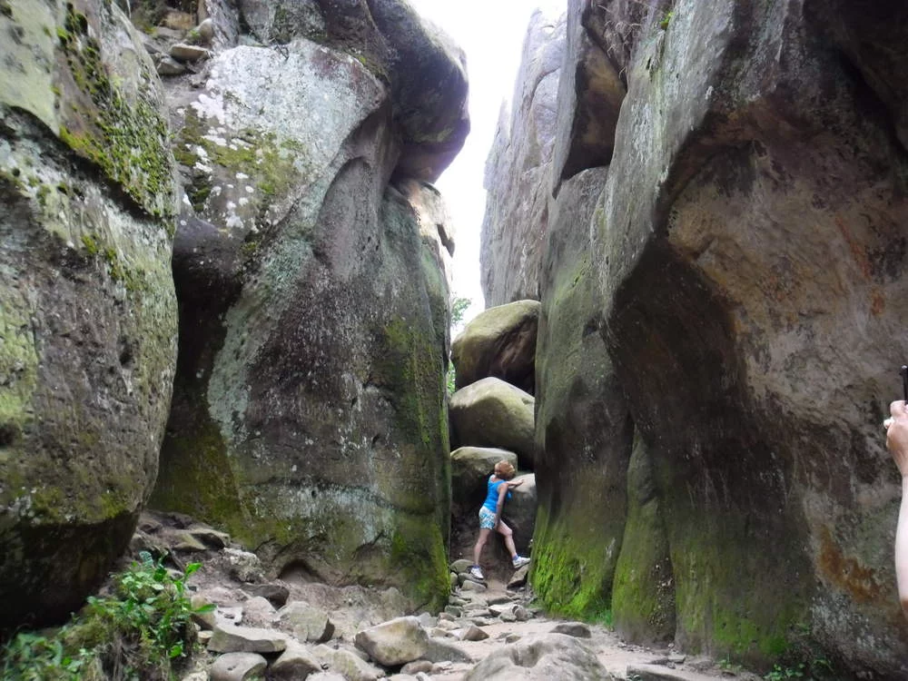 День поездки на скалы Довбуша. Ровно 100 км от Сходницы. Лучше ехать через Урич, т.к. по пути будут потрясающие виды горных рек и горы. Мы ездили с друзьями на машине, лучше нанять кого-либо из местных на личном транспорте и ехать с остановками. Конечно, подобрать компанию, чтобы было дешевле. Нам обошлось в 200 грн. на бензин и 20 грн. за въезд машины.