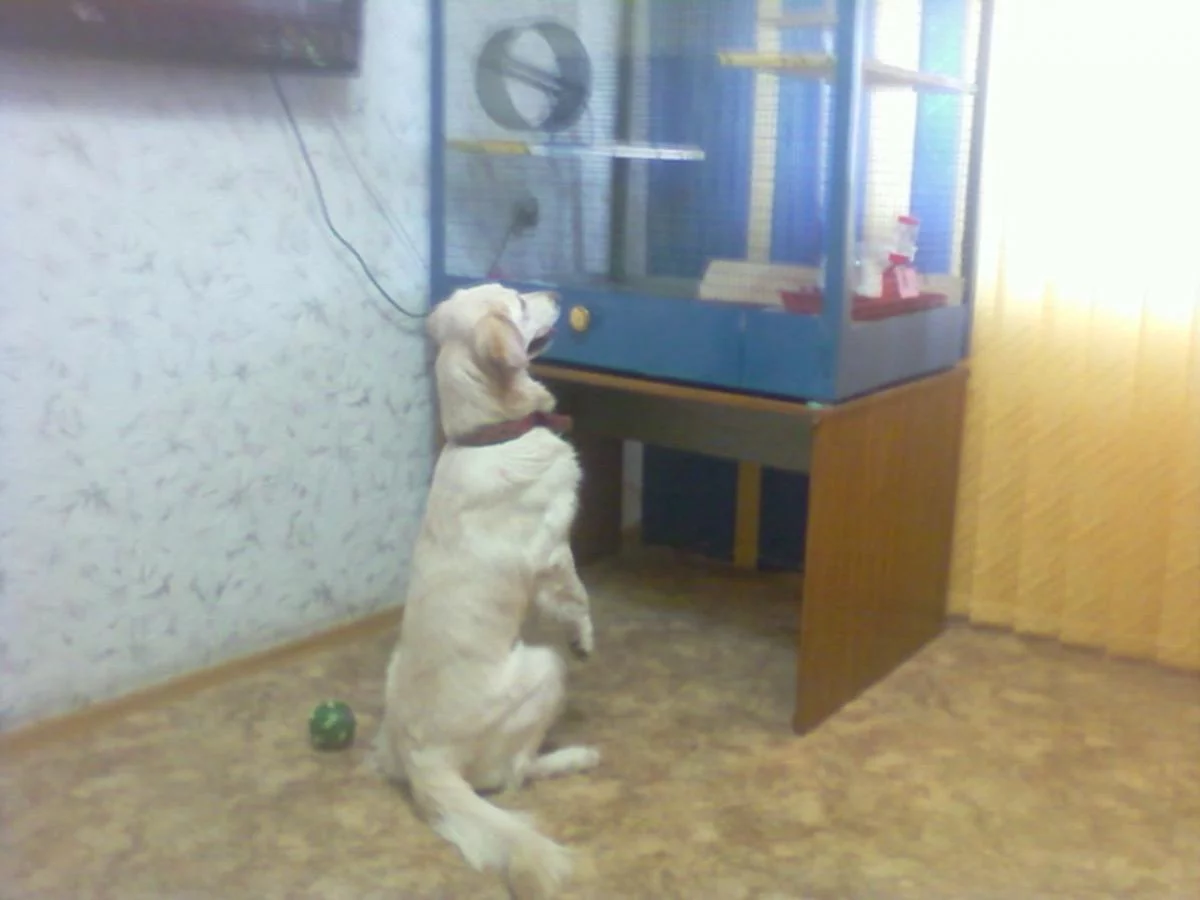 У нас зайка уже без проблем,причем делает она ее не только по моей просьбе,но и когда видит что то любопытное-как в случае с фотографией ниже-крайнюю заинтересованность вызвала клетка с шиншилами:D