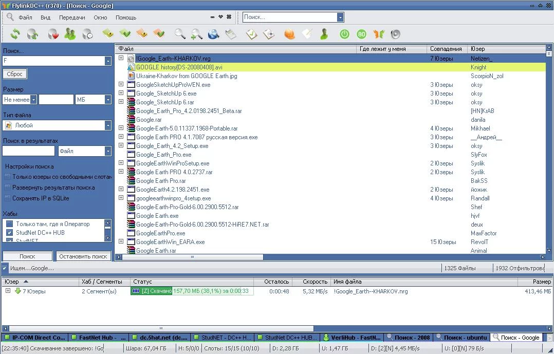 На скриншоте ниже зделано три замера с интервалом около минуты на 2ip . ru, также прилепил скришноты с клиентом DС++ из дому на котором видны хабы, скорость скачивания/отдачи и другая информация, которая возможно кумуто окажется интересной. Время на скриншотах также видно.