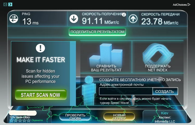 Ничего не могу сказать про ИПком, но заявить что у триАнала 100мбит в мир это клиника...