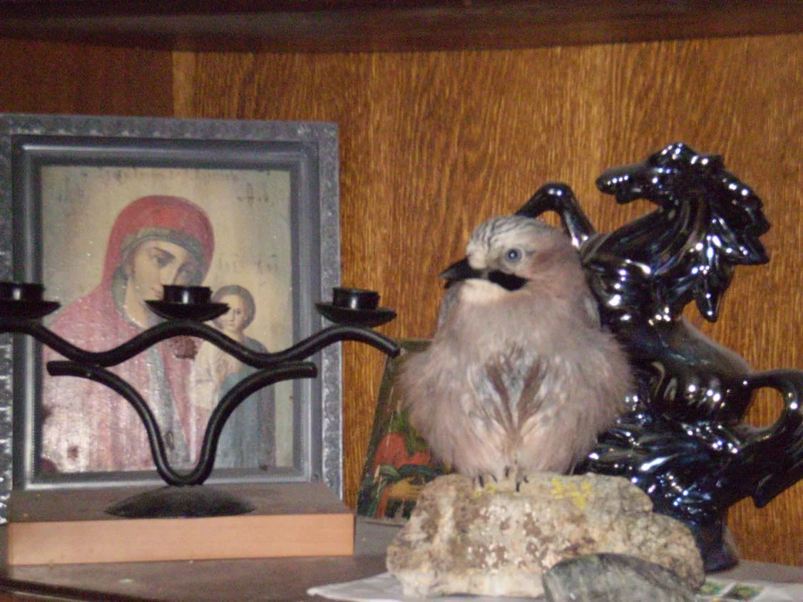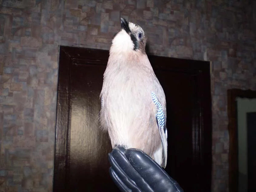 Прошлым летом возле подъезда подобрал слетка сойки..Видно выпал из гнезда..Выкормил..научил летать...Вынес на улицу через месяц - он не захотел улетать...Забрал домой..Сейчас он начинает разговаривать..Четко говорит: давай-давай, Ты чего это чего, ОЙ!, Алло, и свое имя : Чиквенто..Другие слова то же есть..Назвали мы его сразу же когда подобрали...Так, что теперь у нас есть украинский(харьковский) говорящий попугай - сойка Чиквенто...