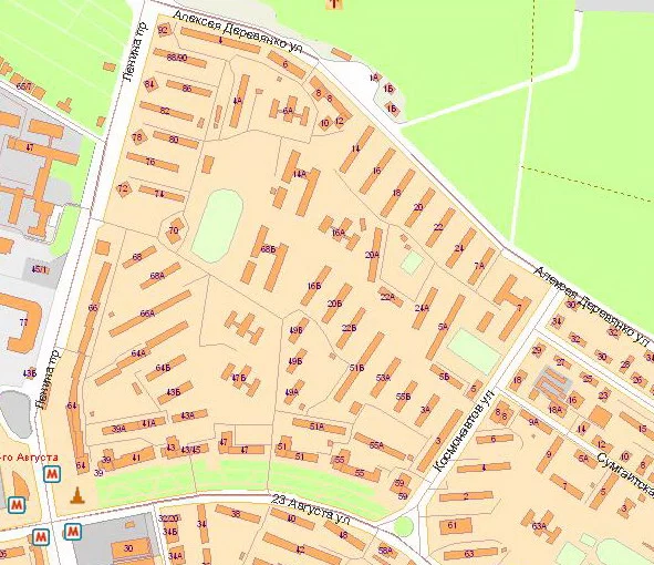 Но почему не видны пятиэтажки во дворе "Колобка" (№64-А и №66-А по пр. Ленина) ???
