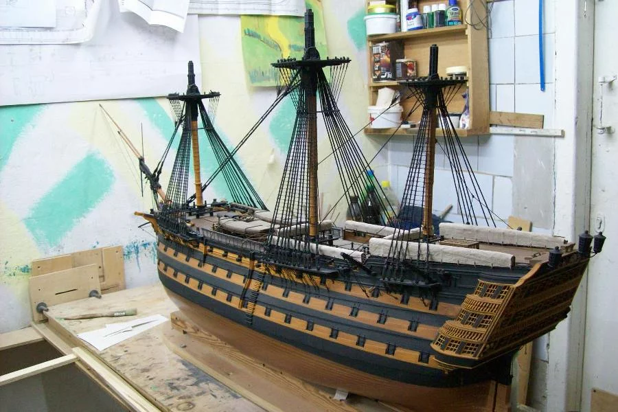 Нет, это не кит. Это с нуля. В масштабе 1:64. Хотя киты мы тоже можем собрать. Выбрать хороший и собрать. Виктори или что-то сходное, например, HMS AGAMEMNON масштаб 1:64. HMS Agamemnon - 64-х пушечный линейный корабль, спроектированный известнейшим морским архитектором Сэром Томасом Слэйдом. Сэр Томас так же вычерчивал HMS Victory. Построенный под управлением Генри Адамса на Bucklers Hard, HMS Agamemnon, после четырех лет строительства, был спущен на воду в 1781 году. Он стал одним из самых известных кораблей Флота её Величества. Адмирал Нельсон, кто и прославил этот корабль, командовал им с 1793 по 1796 год. Как раз во время осады Calvi в 1794 году Нельсон, являясь капитаном Agamemnon-а, потерял свой правый глаз. Здесь же он встретил леди Гамельтон во время дипломатического визита в Naples в 1793 году. HMS Agamemnon был в центре событий трех самых бурных десятилетий в британской морской истории. Принимал участия в боях при Saints, в Копенгагене, в Трафальгарском сражении. Позже он состоял на службе в Западной Индии, поучаствовав в сражении в Санто-Доминго, а потом и в водах Южной Америки. Служил Англии до тех пор, пока в 1809 году не потерпел крушение в заливе Мальдонадо около побережья Уругвая. Сейчас полным ходом идет исследования его обломков.