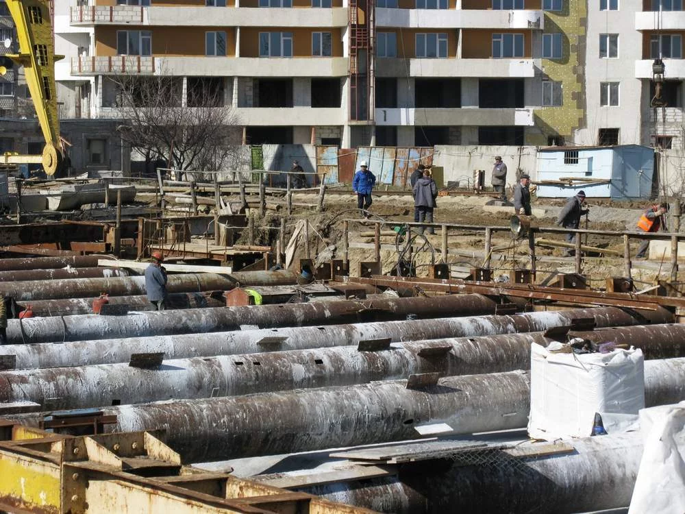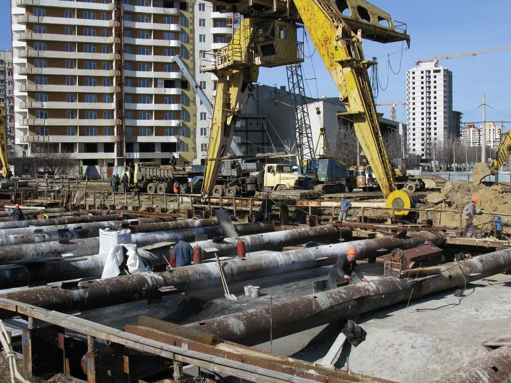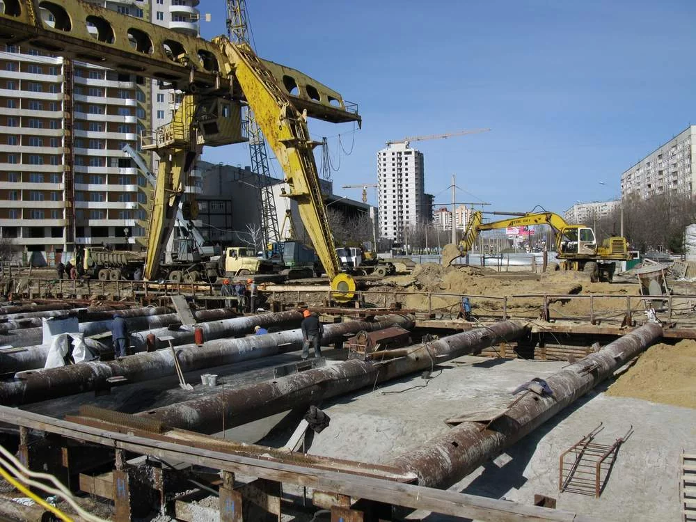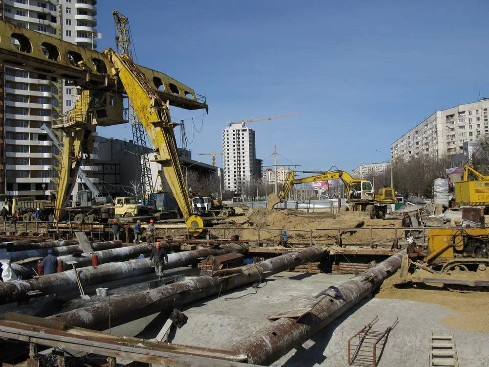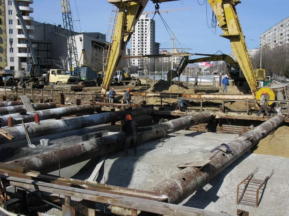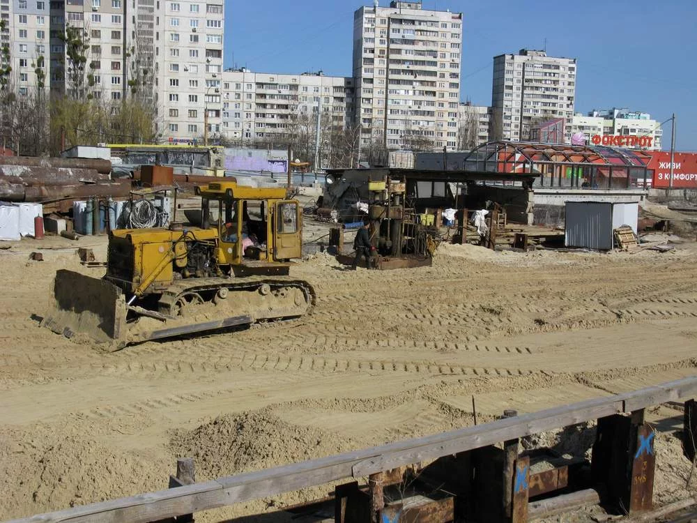 Пробегал мимо сегодня, ну а дальше вы сами знаете.....активненько взялись за работу черти. Людей много работает, станция почти вся залита основной толщей бетона, почти вся станция закрыта гидроизоляцией, на фото видно как где то посередине станции по рабице мажут защиту гидроизоляции. Бульдозер уже засыпал треть станции песком сверху, подошёл вплотную к поперечным трубам-распоркам. На северной площадке тоже есть какое то движение.