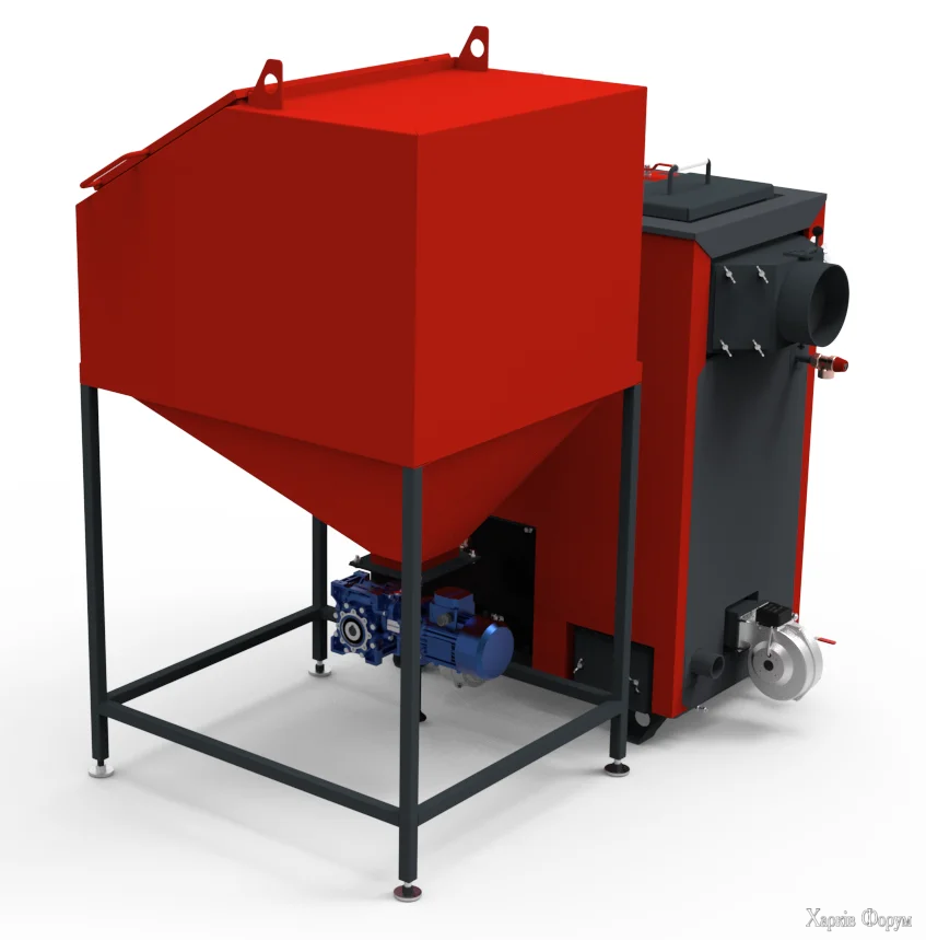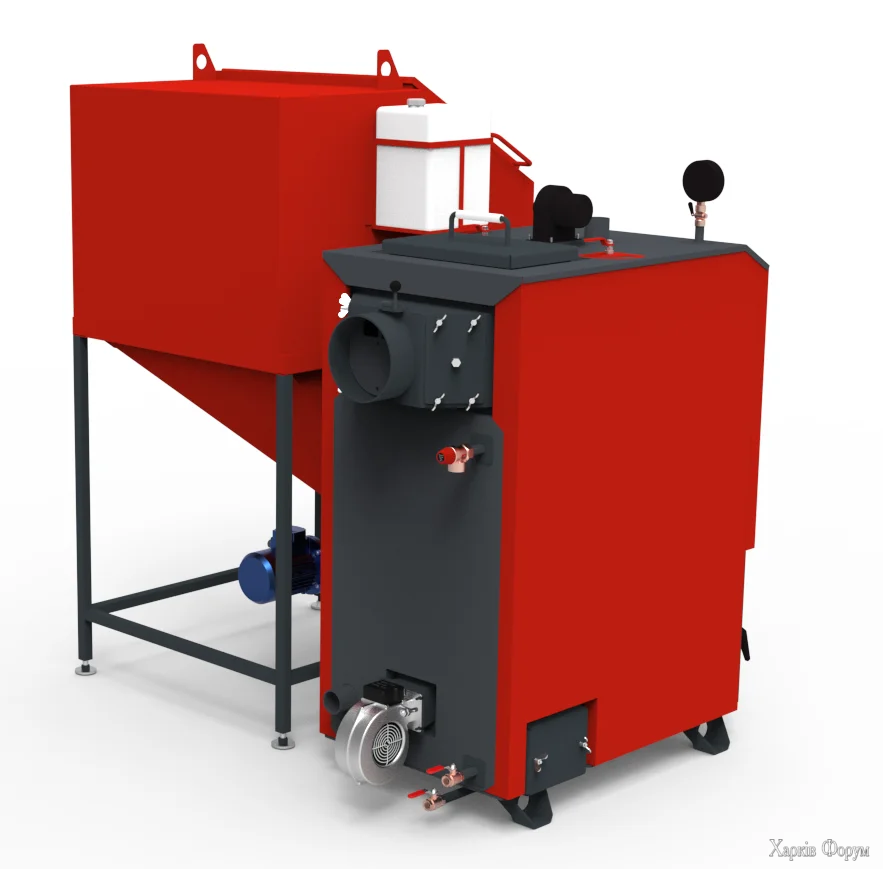 Але основний напрямок роботи - це саме твердопавливні котли. У нас є побутові моделі (10 - 98 кВт) для опалення приватних осель, є і промислові моделі потужністю до 2000 кВт, які вже призначені для опалення торговельних центрів, тепличних господарств чи виробничих приміщень площами до 20 тис м. кв. У випадку замовлення промислових моделей проектуємо та прораховуємо розміщення котла в наявних приміщеннях, розраховуємо систему димовідводу, розташування бункерів, тощо.