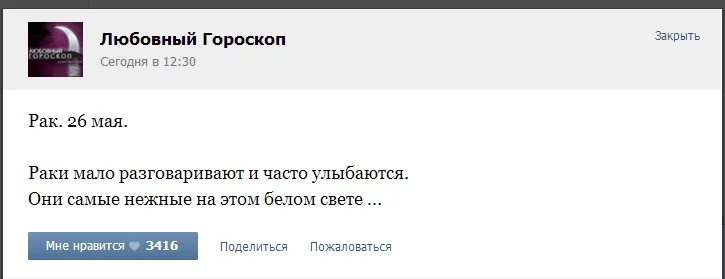 знакомая, нашла я на её страничке в вк такую вот "красоту":И подумалось мне, как истинному раку, насколько этот чудо-гороскоп, соответствует моей действительности.
