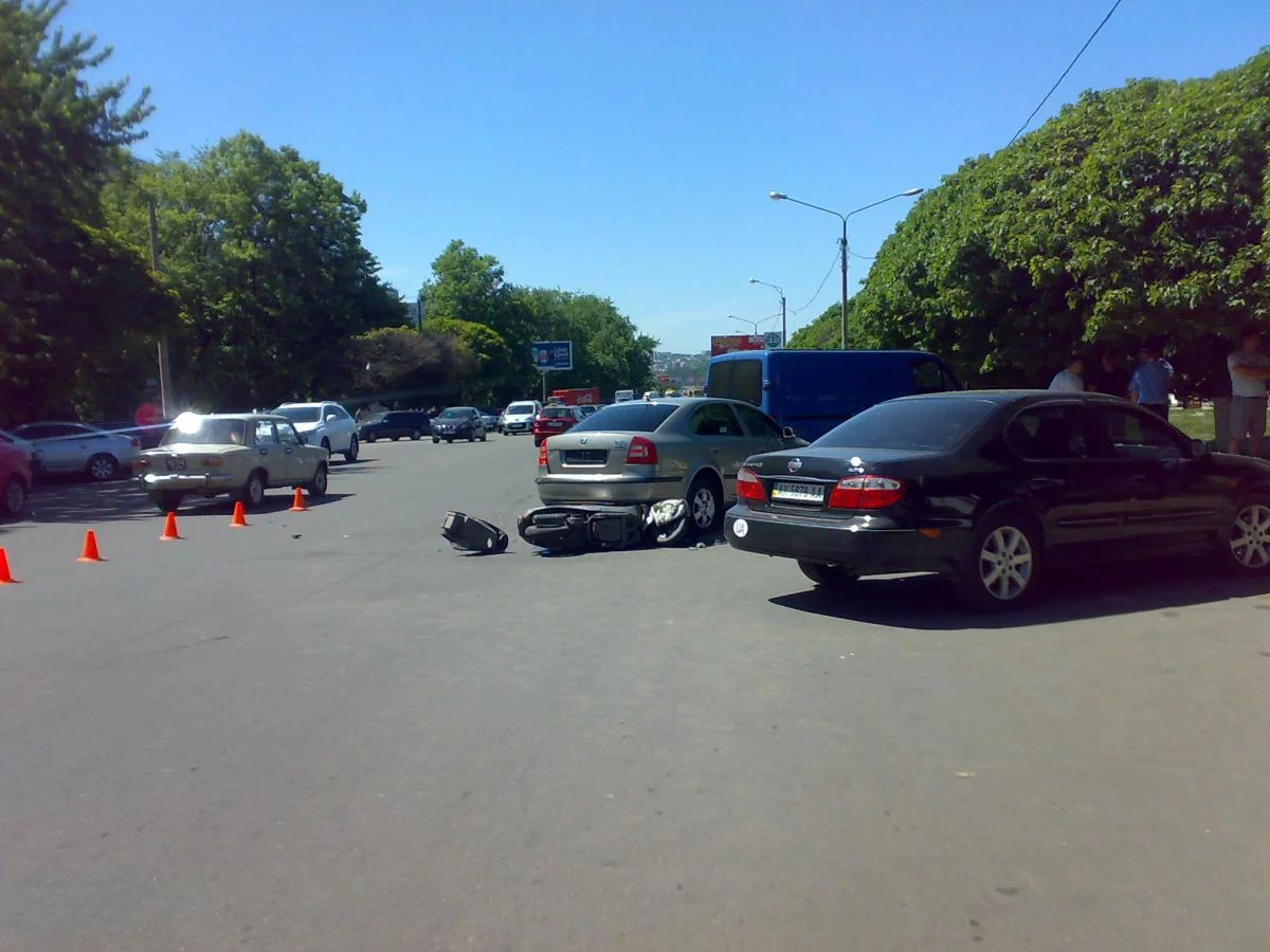 Сегодня где то в 23:00 на перекрестке Динамовской и Сумской (как раз где здание недавно рухнуло). На Динамовской, ближе к супермаркету SPAR стоял Лансер 9 без морды, а на тротуаре, разбив витрину магазина Baldinini, Актион. Светофор работал. Скорее всего, Актион ехал по Динамовской со стороны стадиона, а Лансер по Сумской.