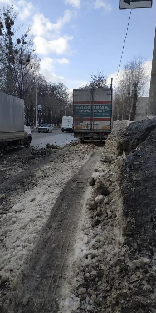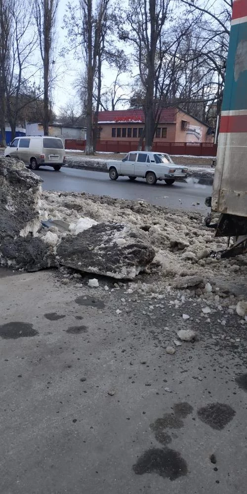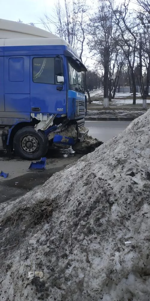 Фура избегала столкновение с бусом Т4. Подравняла сугроб. Водители машин на стоянке отделались легким обсёром.