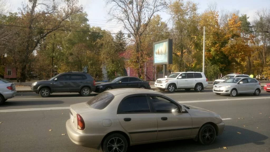 На Белгородском за светофором возле мемориала в сторону центра лобовое, причём в правой полосе.