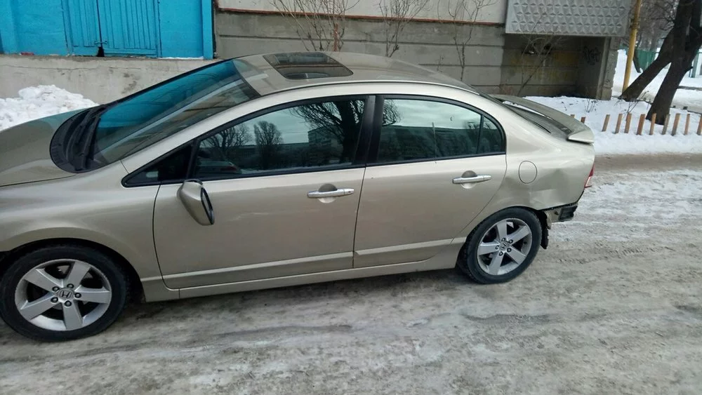 Бамперов у человека нет с начала зимы. Летом с бамперами, как я понял снимает их на зиму, сивик низкий.