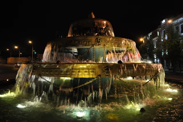 Живем в центре, недалеко от площади Авлабари (ст. М. Avlabari) и нам нравится ночная подсветка города. С террасы нашего отеля Irmeni и окна моей мансарды виден золотистый силуэт Св.-Троицкой Лавры, или Цминда Самеба, а на площади Авлабари вечерами фонтан в три чаши сказочно меняется, превращаясь в подобие праздничного торта.