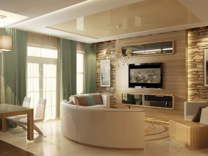 2. Если у вас потолок разделен на 2 группы, то можно сделать светодиодную подсветку, как "интимное" освещение в коробе из ГК и натяжной посередине. Натяжной дешевле чем технологически правильно сделанный потолок (ГК+Шпакл+армировка стеклохолстом+Финшпакель Бостик+хорошая краска). Если грубо натяжной 200-250 грн/м2, то ГК, мною вышеописанный стоит на 30-50 грн/м2 дороже.
