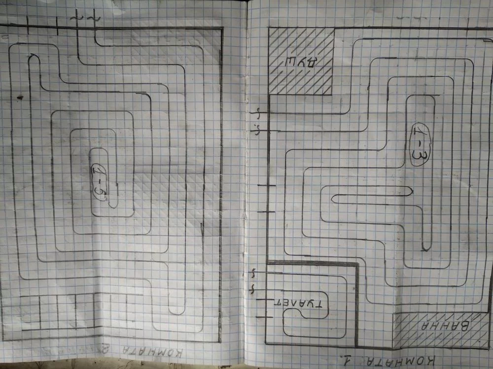 Привожу пример таких "расчетов". Кровать длиной 1 метр, ванная шириной 40 см, расстояние между трубами в контуре от 60 см до метра примерно и больше и т.д и т.п. И как вишенка на торте- отдельный контур для туалета длиной 3(!) метра. Наверное, там еще много интересного, но мне хватило и этого. Пришло время назвать автора- это Дмитрий с ником Стройбад с нашего форума, тел. 0661131586. В паре с ним Козырев Сергей Витальевич, тел. 0952259446.