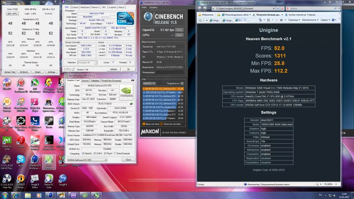 вот разогнал с теми же тестами,у меня 600 чифтек,Максимальное поддерживаемое разрешение монитора составляет 2560×1600 точек. Видеокарта NVIDIA GeForce GTX 570 обладает показателем рассеиваемой мощности 219 Вт и требует использования блока питания мощностью не менее 550 Вт. Максимальная допустимая температура графического процессора заявлена на уровне 97 градусов Цельсия,