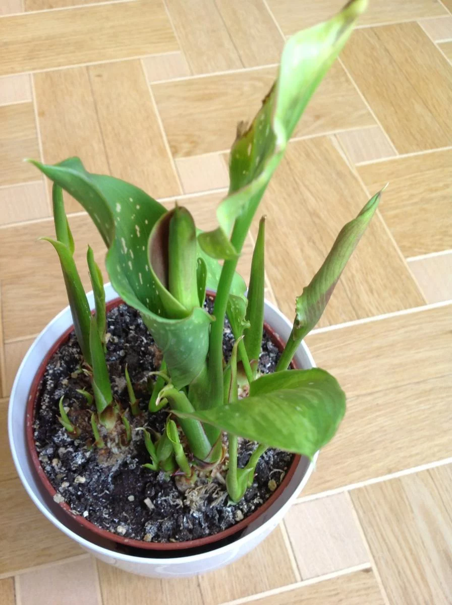 давала деток мне регулярно, но я их раздаривала, вот с зимы ни одной больше нету, вот ещё, деток оставлять или оставлять одну каллу на горшок???