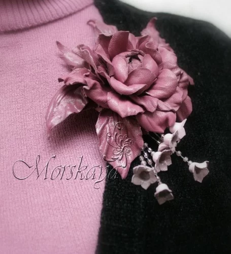 Брошь-заколка "Цветок из сказки" из натуральной итальянской кожи, послужит необычным и замечательным украшением, создаст яркий акцент и поднимет настроение его обладательнице. Оригинальный, стильный и, вместе с тем, практичный аксессуар.