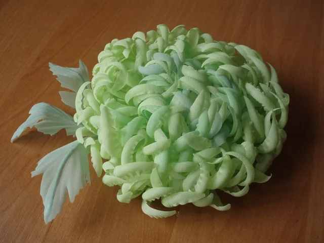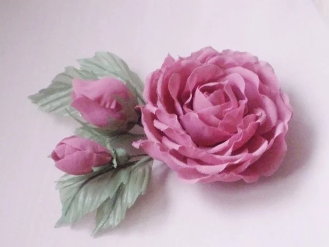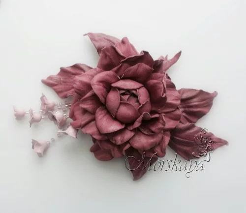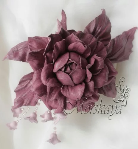 Цветок из натуральной кожи фабричного окраса очень нежный, мягкий, пластичный, приятный на ощупь.