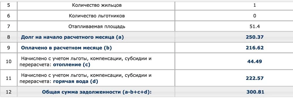 вот то, что мне насчитали по коммуналке