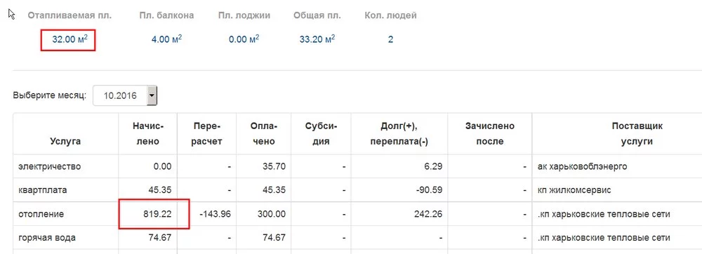 Зашла в свой кабинет. Это данные на 1 .11. 2016. Смущает сумма за отопление. Счетчик на доме.