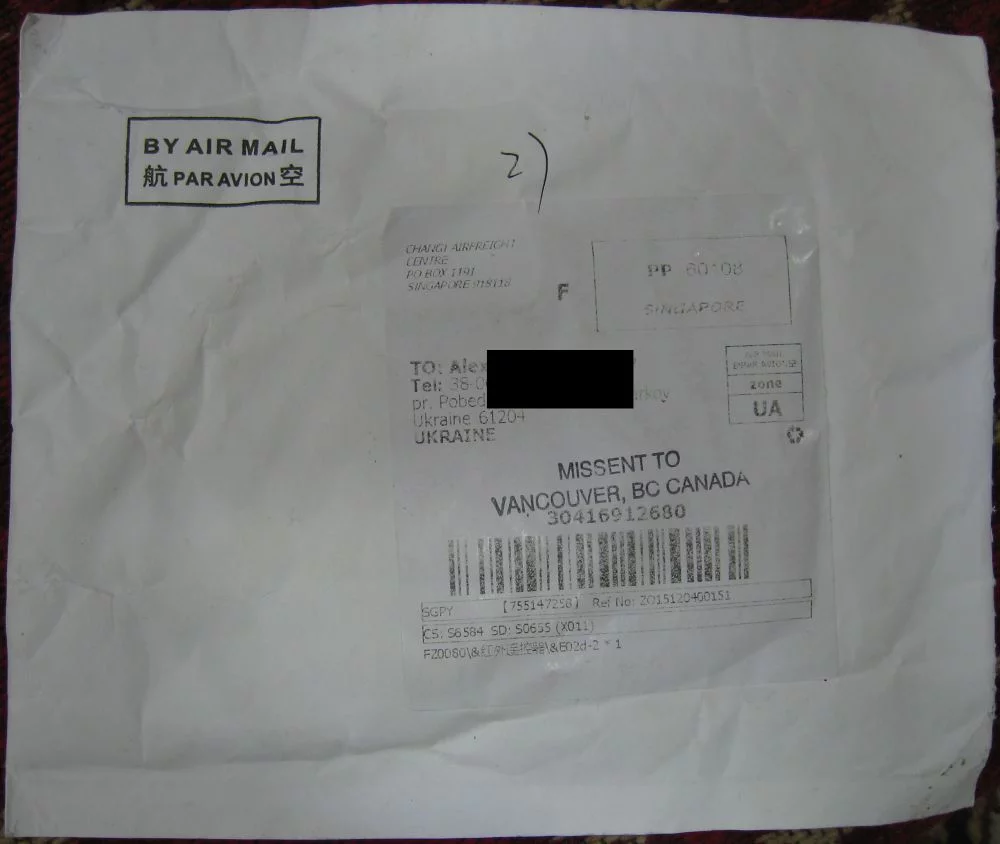 +-1000 км - это фигня. Я вот уже 4 года торжественно храню вот такой конвертик. Стоимость посылки $1.18 (плоский пульт ДУ Ардуиновского типа). Доставка, естественно, бесплатная. Итого время в пути 28 дней. Только сейчас высмотрел смайлик :)